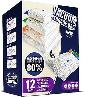 GONGSHI Vacuum Storage Bags (3 x Jumbo, 3 x Large, 3 x Medium, 3 x Small), Space..